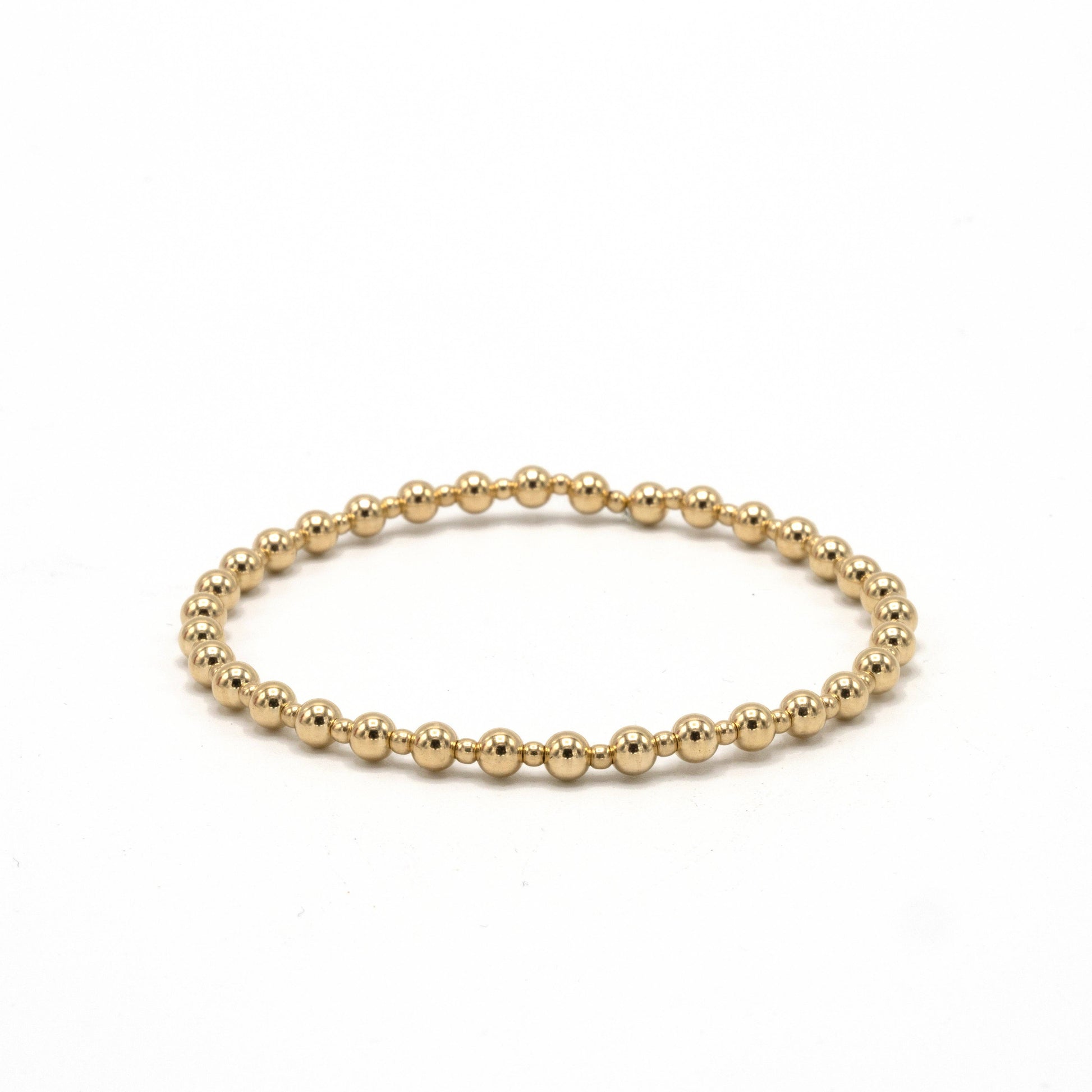 Enhance your bracelet collection with our 14k gold filled stretch bracelet featuring a unique 4-2-4mm mixed bead design. Perfect worn alone or layered for added style. This piece is part of the erin gray waterproof collection.