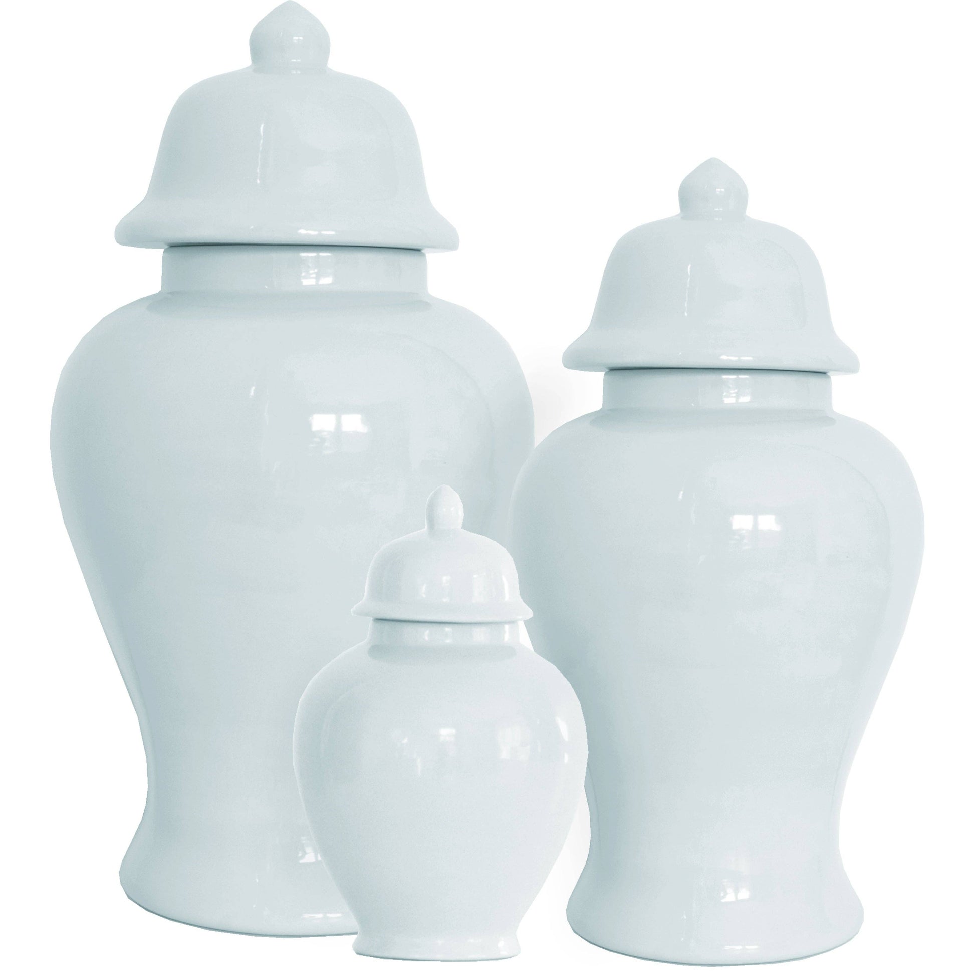 We. Love. Ginger. Jars So much in fact, that we decided they need to exist in every color of the rainbow! Elegant and timeless, these functional accessories add gorgeous hand-painted color and texture to dining tables, mantles, coffee tables, end tables, entryways, and kitchens. Our classic swallow-tail lidded jars are hand-poured in Oklahoma and hand-painted by a Lo Home artist before being fired for a beautiful and durable finish which is food and water safe. Dimensions: Small: 5" W x 5" D x 8" H Medium: 6.75" W x 6.75" D x 13.5" H Large: 8.5" W x 8.5" D x 16.5" H These pieces are custom made just for you!
