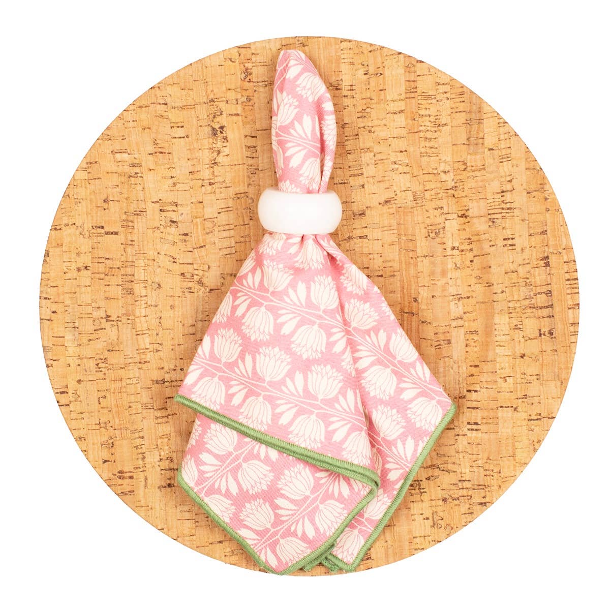 Introducing the Kendall Napkin in Pink/White/Green, measuring 18x18. This stylish napkin adds a touch of elegance to any table setting, with its vibrant colors and generous size.